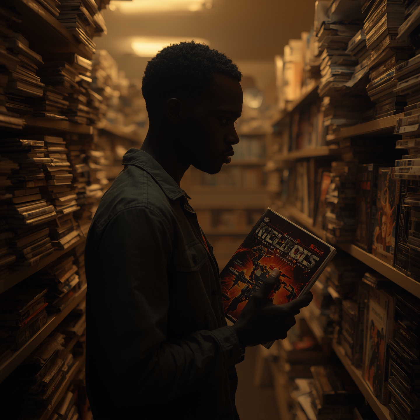 On the day of his grandmother’s funeral, Ryan walked aimlessly into town and found himself thumbing through a collection of secondhand games in a charity shop. There it was. Killbots. In an immaculate limited edition. He gripped it tightly and, for a moment, felt a small sense of comfort before placing it back down. “No,” he thought, “time to grow up.”