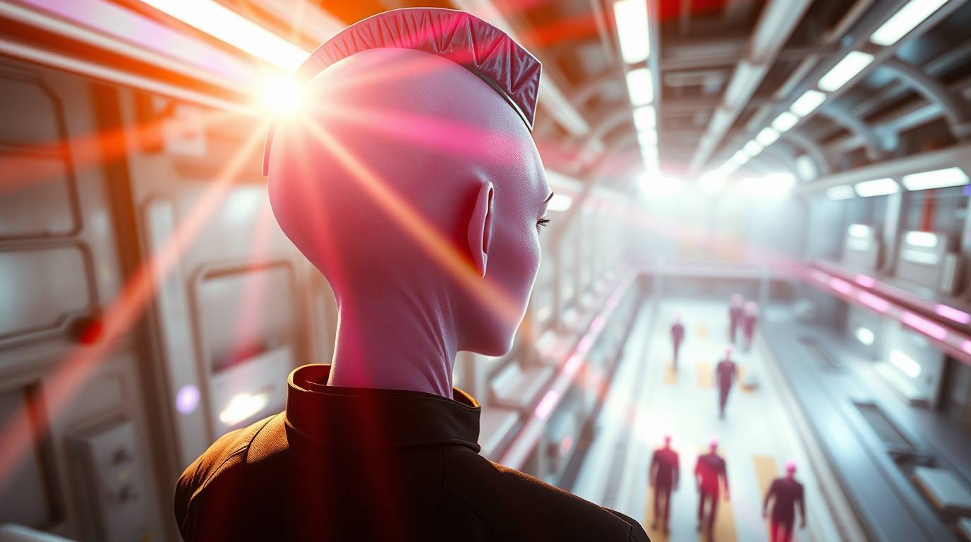 “Our latest innovation changes all that. We’ve partnered with a leading gaming corporation to crowdsource conscience. Ordinary players from across the galaxy train our AI to make life-or-death decisions, simulate empathy, and even exhibit moral hesitation. All the quirks that make sentient choices so… effective.”