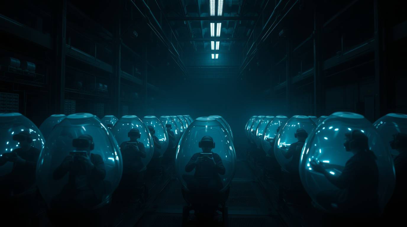 Rows of glossy egg-shaped pods lined the room. Game terminals each house a player deeply immersed in the game. Their fingers twitching on the controls, eyes glazed, locked in battle.