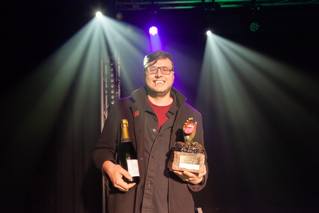 Pictured is Aaron on the awards night accepting the prize for 'best dialogue.'